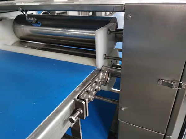 - Три сателлитных вальца и три калибрующих вальца мягко раскатывают тесто, создавая гладкую и однородную поверхность теста.